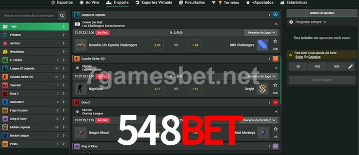O 548bet oferece uma grande seleção de opções de apostas em e-sports com probabilidades competitivas